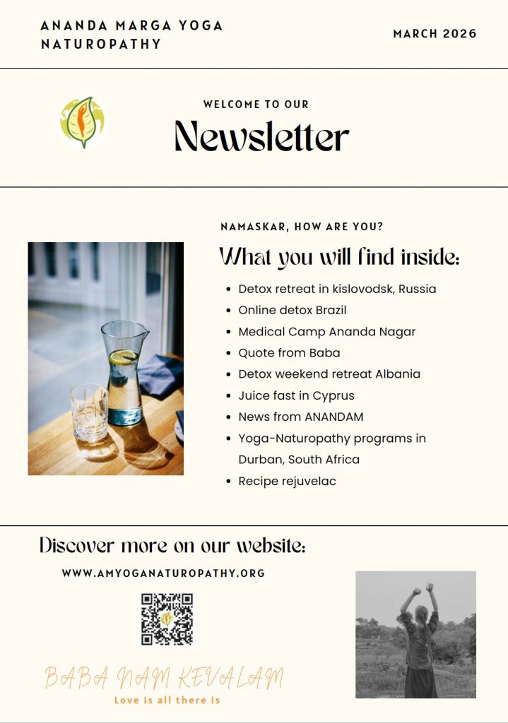 Every month, the Ananda Marga Yoga Naturopathy community continues to grow and share practical ways to live a healthier and more conscious life. In this month’s newsletter you will discover inspiring initiatives from different parts of the world — all connected by the same vision: helping people reclaim their health naturally. Here are some highlights […]